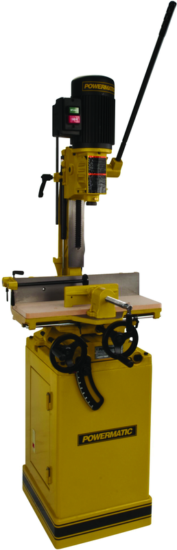 •The 719T Tilt Table Mortiser features heavy-duty cast iron construction and a powerful 1HP motor for the most demanding jobs •The head is mounted using adjustable gibs to assure years of trouble-free service •The heavy rack and pinion gear system utilizes a spring-loaded six position adjustable handle for movement •A handy depth stop gives a uniform depth of mortise •A large 20-1/4" x 7" table gives plenty of work support and will adjust to any angle between 0 and 35° •The table can also move left to right and forward and back on dovetail ways with the large handwheel controls •Adjustable linear stops and flip down stop allow for precision repeatability •The quick adjust clamp provides plenty of work-holding force and will swivel to accommodate angled workpieces •The heavy enclosed steel cabinet provides plenty of storage inside for chisels and accessories •5 Year Warranty