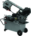 •Innovative and built to last; that's how customers describe the latest addition to the JET line of saws. Easy speed change, quick lock vise and large 8" wheels enhance the convenience of this rugged machine •Heavy-duty geared head transmission for quick speed changes •Heavy-duty cast iron saw bow and head •Hardened and ground worm gear •Large 8" wheels and handle for easy movement •Quick-positioning vise swivels to 45°, reducing set up time •Built-in, self propelled blade brush extends blade life •Coolant system •Adjustable material stop •2 Year Warranty •