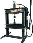 •Base: 23 x 18 •Brand Name: Dake •Capacity (tons): 10 •Height: 36 •Maximum Ram To Table: 16 •Minimum Ram To Table: 4 •Model Number: B-10 •Ram Travel (in): 6 •Type: Hand Operated Hydraulic Press •Weight: 165 lbs •Width Between Uprights: 16-3/4