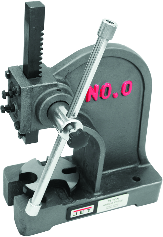 •Every JET arbor press is made of a heavy ductile iron casting that offers incredible strength and rigidity to the overall framework •The base, ram housing, framework and 4 position bottom plate are precision machined for unquestioned accuracy •For all production and assembly applications •Precision cut steel rams and pinions for accurate operation •Tables and slotted table-plates are flat and parallel to provide accurate support •2 Year warranty