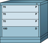 •Brand Name: Lyon •Color: Dove Gray •Depth: 28.25 •Description: Table - Standard Cabinet •Height: 30-1/8 •Load Capacity: 400 lbs per drawer •Number of Drawers: 4 •Set Includes: Drawers •Type: Modular Drawer Cabinet •Weight: 276.9 lbs •Width: 30