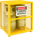 •Vertical cabinets will accept 4 standard vertical cylinders up to 59-3/4" •Includes chain, adjustable in 1" increments, to hold cylinders in place •Pre-punched lagging holes in feet •Expanded metal sides, back and door, for visibility of contents. 1-1/2" x 1/8" angle iron frame •DANGER FLAMMABLE MATERIALS signs on each door •In full compliance with OSHA and NFPA standards when used properly •Shipped fully assembled •F.O.B. Texas