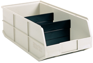 •Molded of heavy duty filled copolymer •Water, oil, and grease-proof •1 Cross-wise dividers included per bin •Stackable •Available in BEIGE only •Sold in carton qty. of six